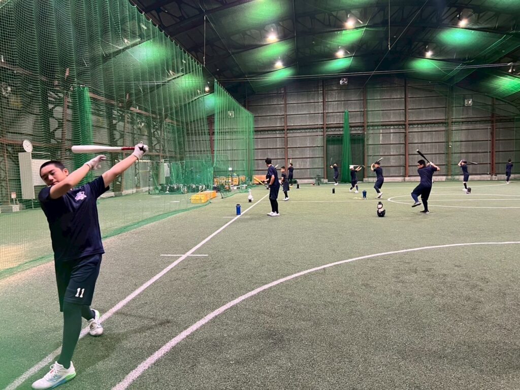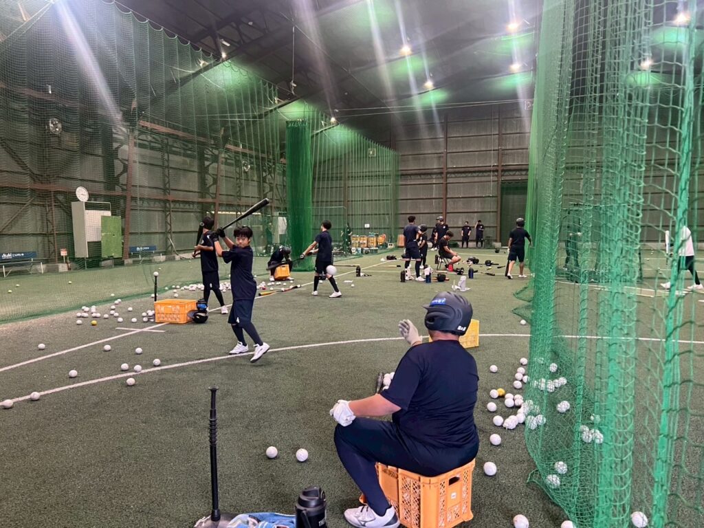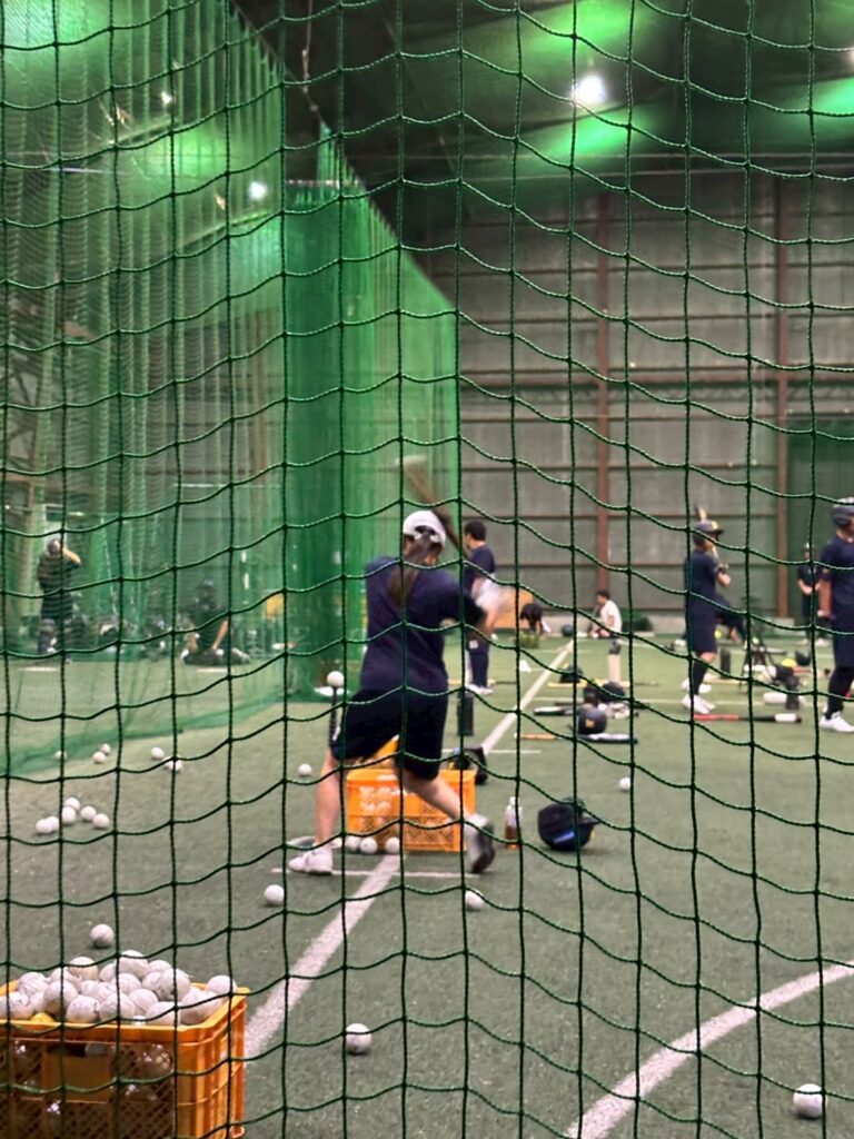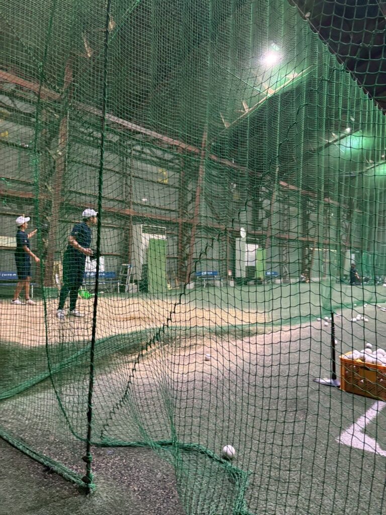 午前・午後共にとにかく素振り⇒マシン⇒置きT・トスとバットを振りました。