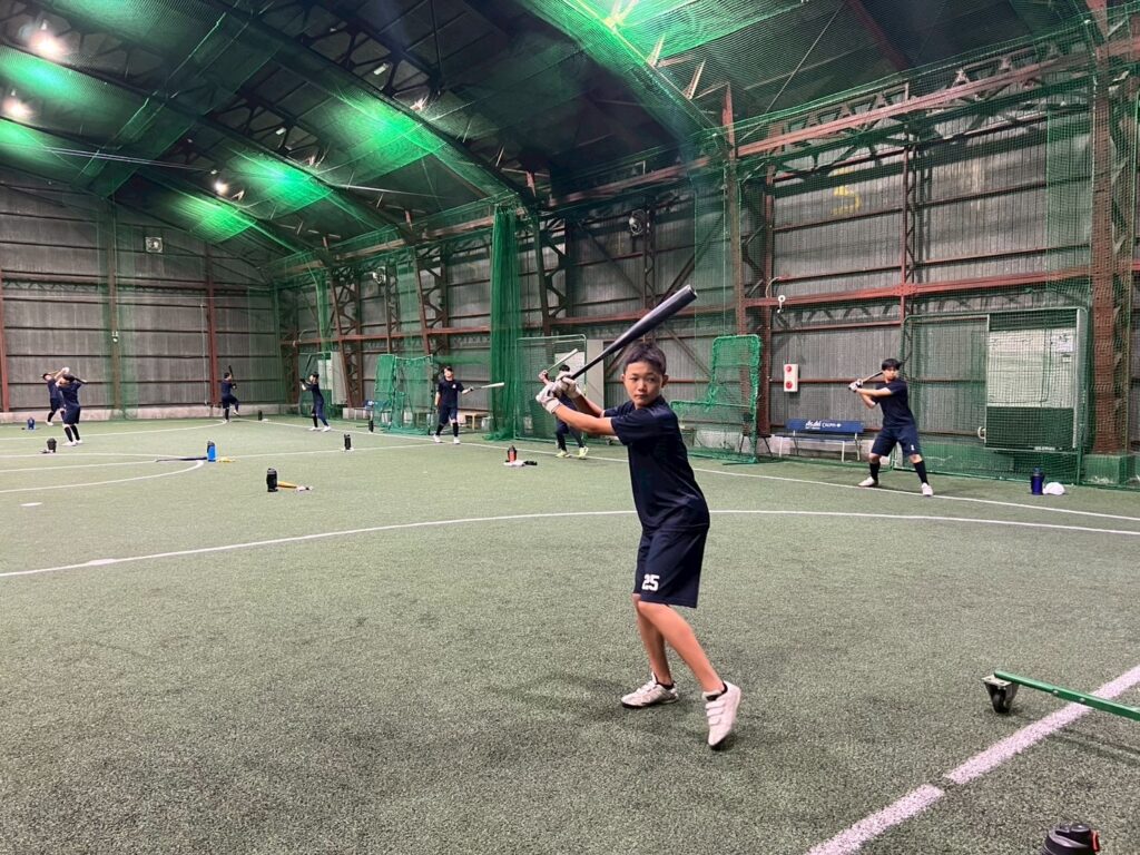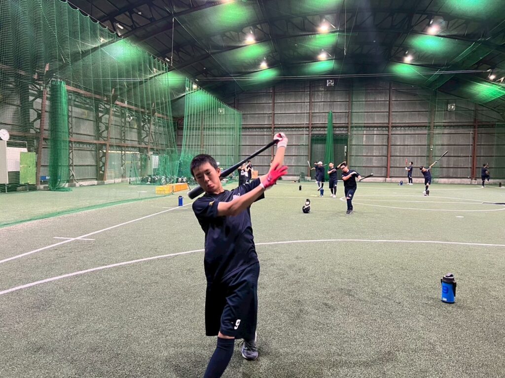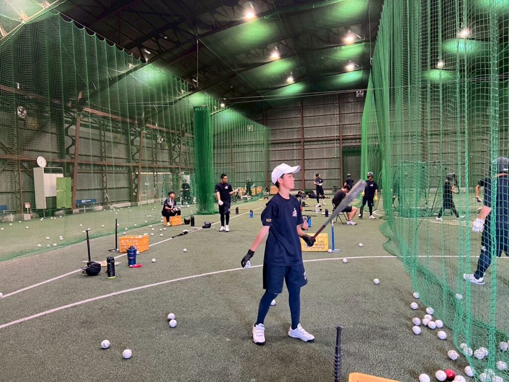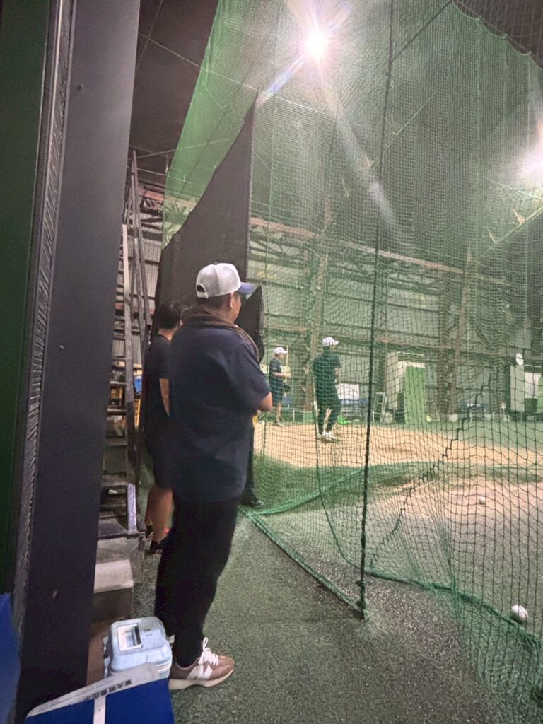 午前・午後共にとにかく素振り⇒マシン⇒置きT・トスとバットを振りました。