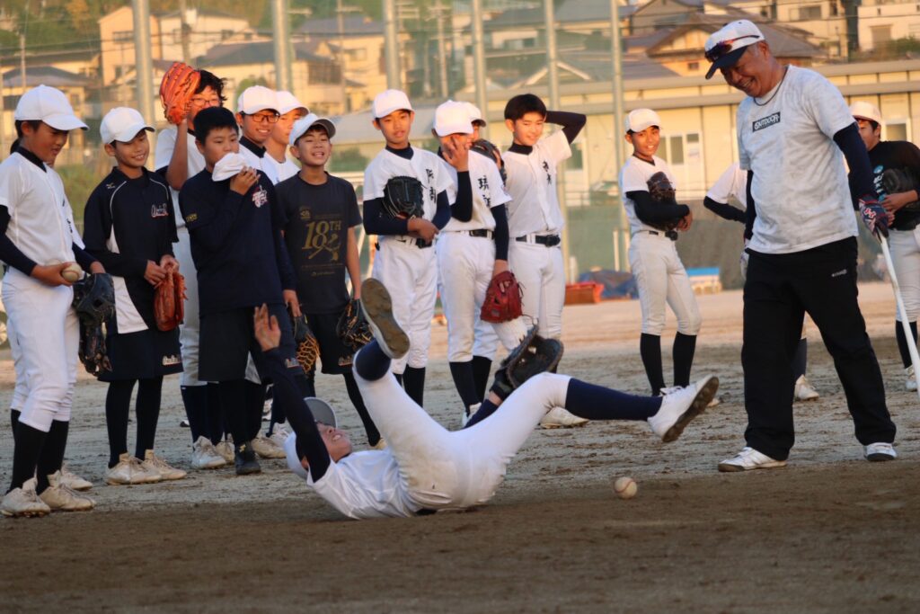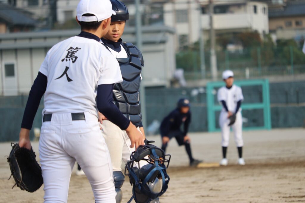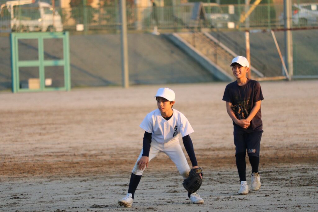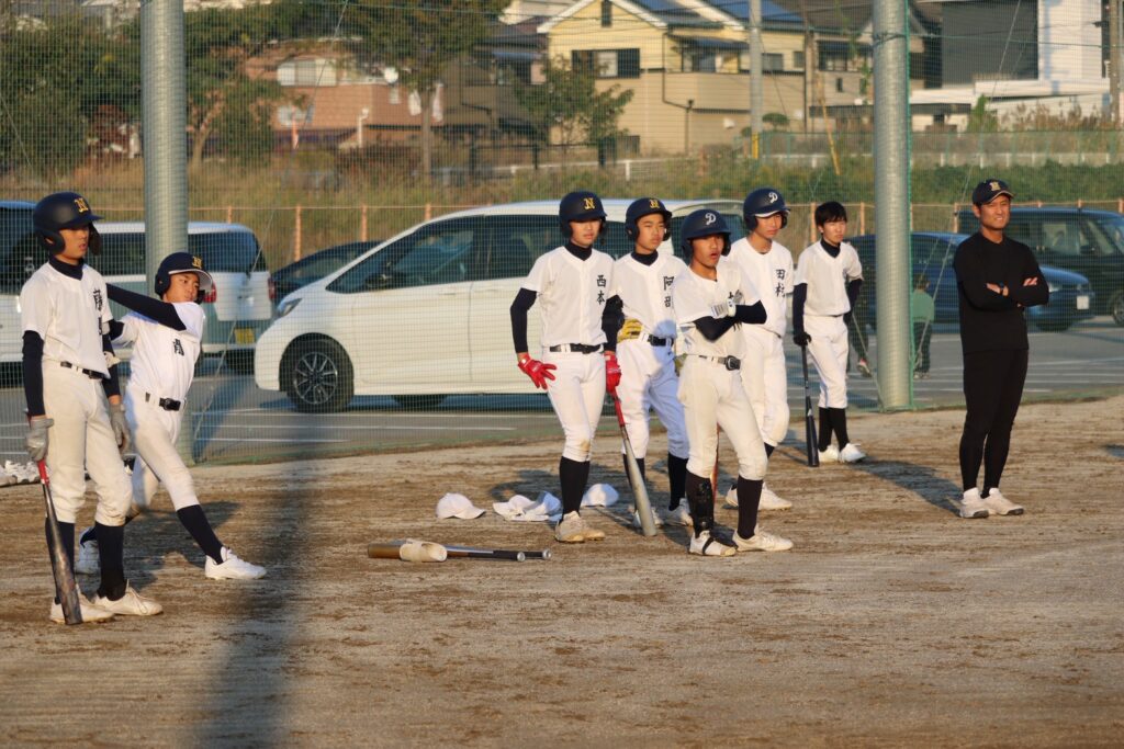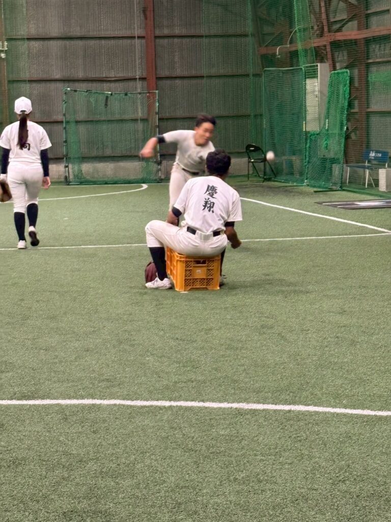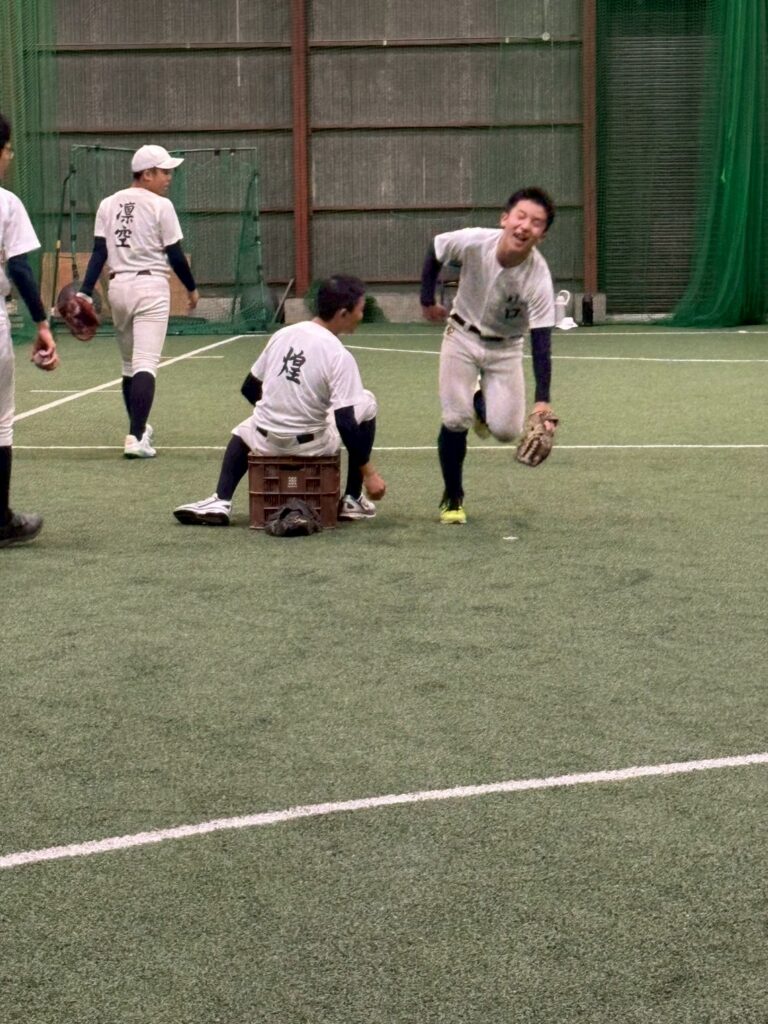 2.3年生はブリスフィールドで練習を行いました。アップを終えてからシャトルランとキャッチボールで体を温め終えると投手・野手に分かれて練習を行いました。投手はピッチング練習・野手はノックを受けて守備練習を行った後、投手に端からボールを転がしてもらい股割りをしながらの捕球、走りながらの捕球の練習で午前が終了しました。