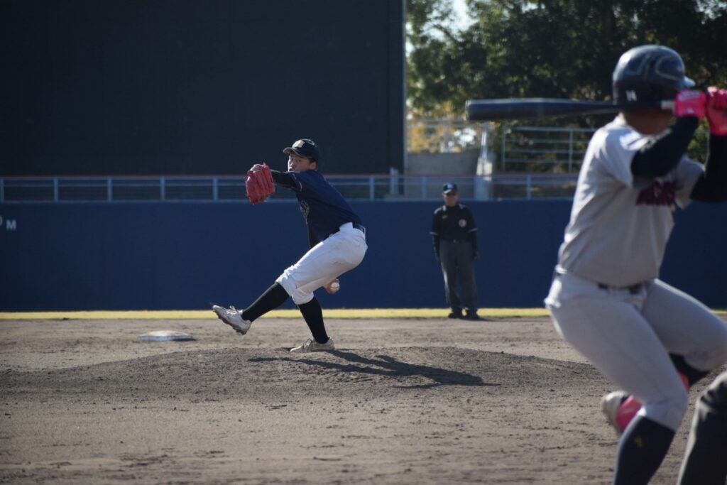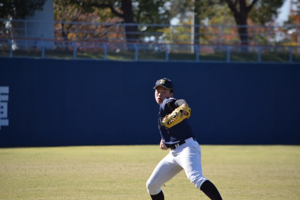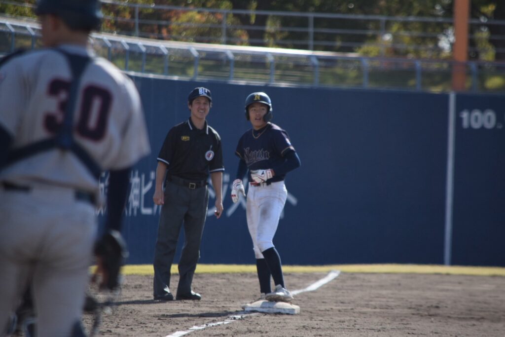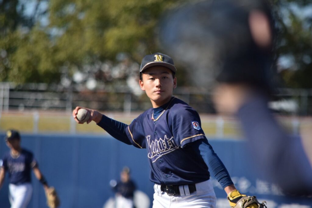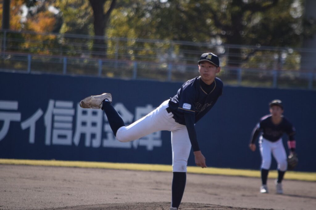 先発は竹添くん。初回は2四球と制球が定まりませんが、小橋くんの盗塁阻止や味方の好守に支えられ2回まで無失点で試合を進めます。3回に2死から連打を浴びて先制を許してしまいます。