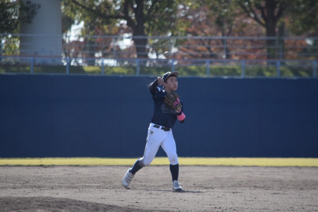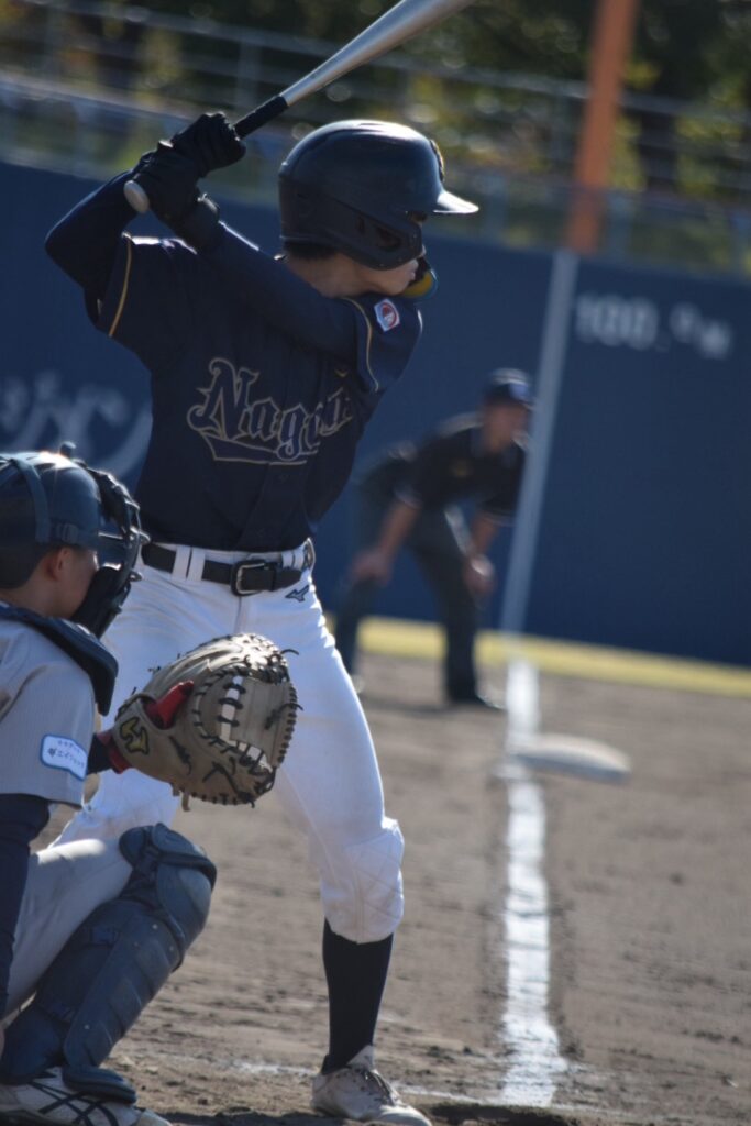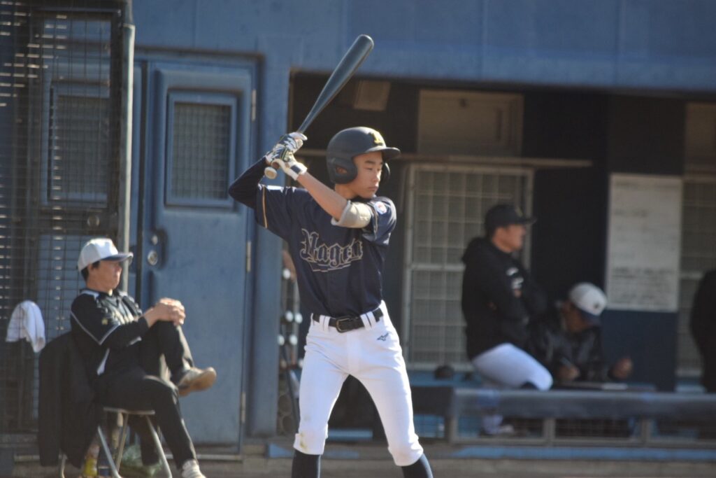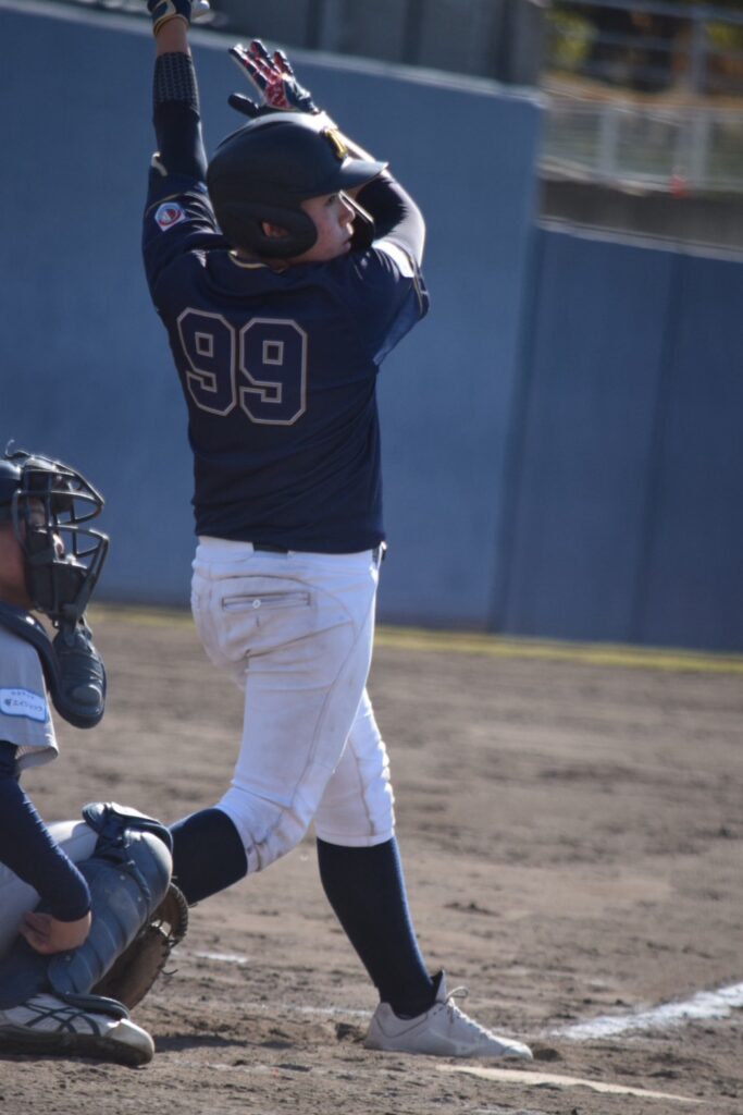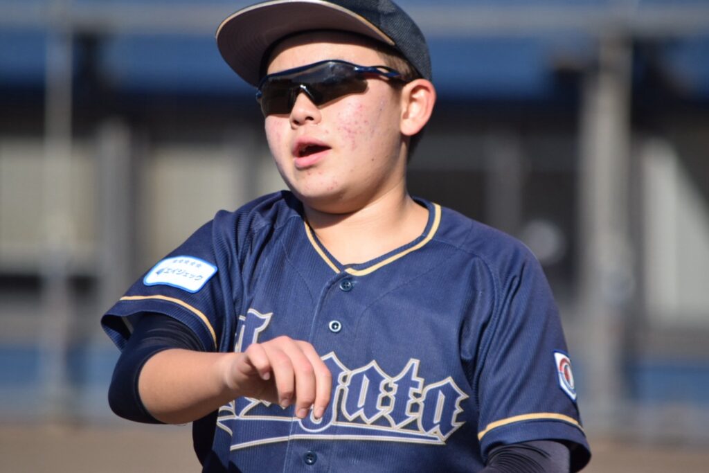 打線は3回まで沈黙していましたが、1-0で迎えた4回裏、先頭の山口賢輔くんがヒットで出塁すると中井くんが内野安打で続き3番岩永くん。初球をセンターオーバー3塁打で一気に逆転しました!続く小橋くんの打席でバッテリーエラーで1点を追加し3-1とリードを広げます。その小橋くんもレフト線2塁打でチャンスを作ると2死から奥葵生くんがセンター前に抜けるタイムリーヒットで4点目を追加します。