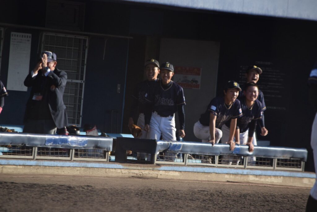 続く小橋くんがレフト線を破る3塁打を放ち同点にすると、バッテリーエラーの間に生還し逆転します。