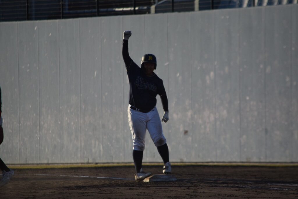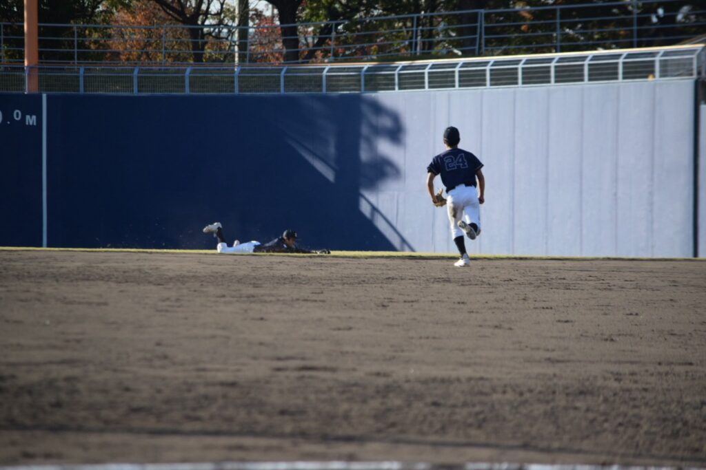 4回には右中間の長打を見事な中継プレーでホーム刺殺とし失点を防ぎました。