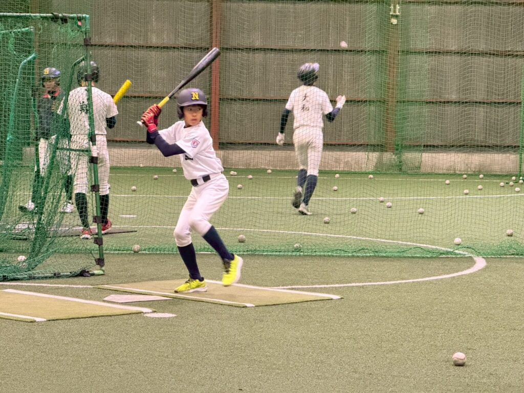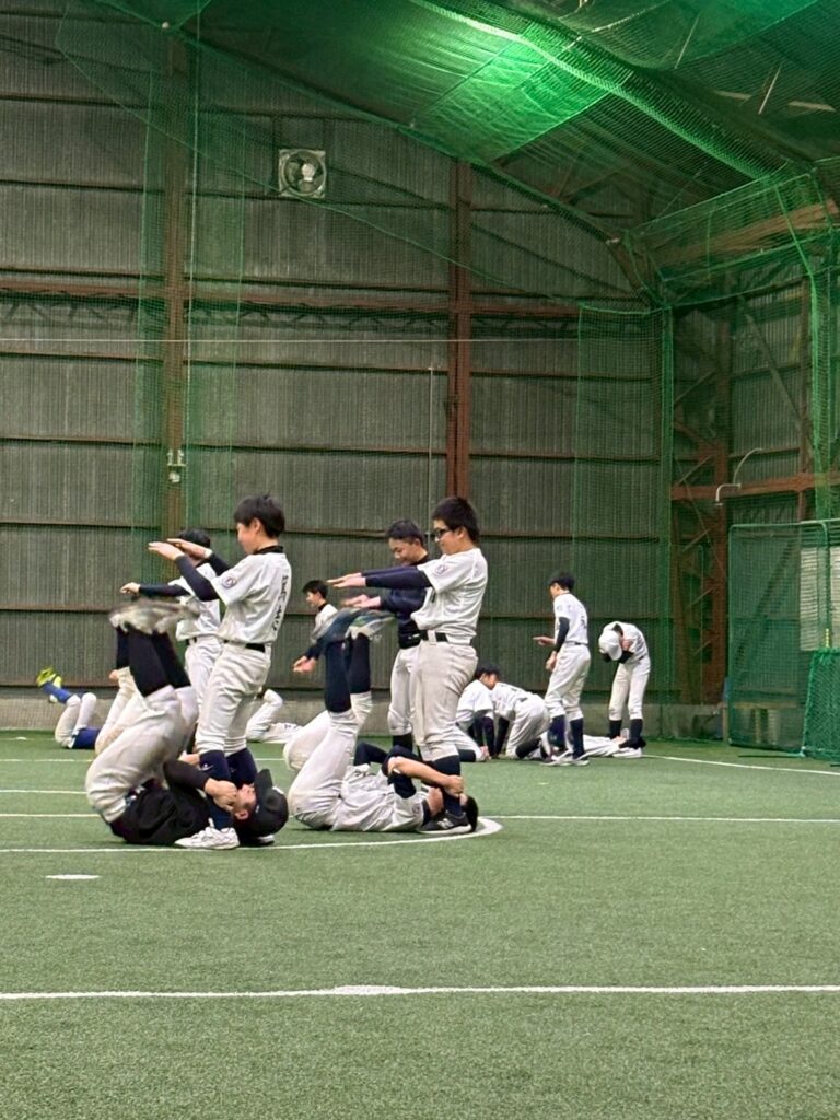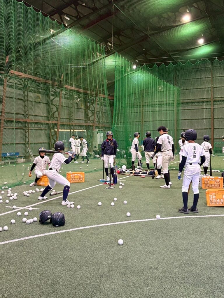 本日は、3学年全体でのブリスフィールド室内での練習でした。体験生も来て楽しく厳しく練習できました。アップ後に、キャッチボール、素振りから、5カ所でのバッティング、打力強化、トレーニングで体幹、脚力も強化しました。
