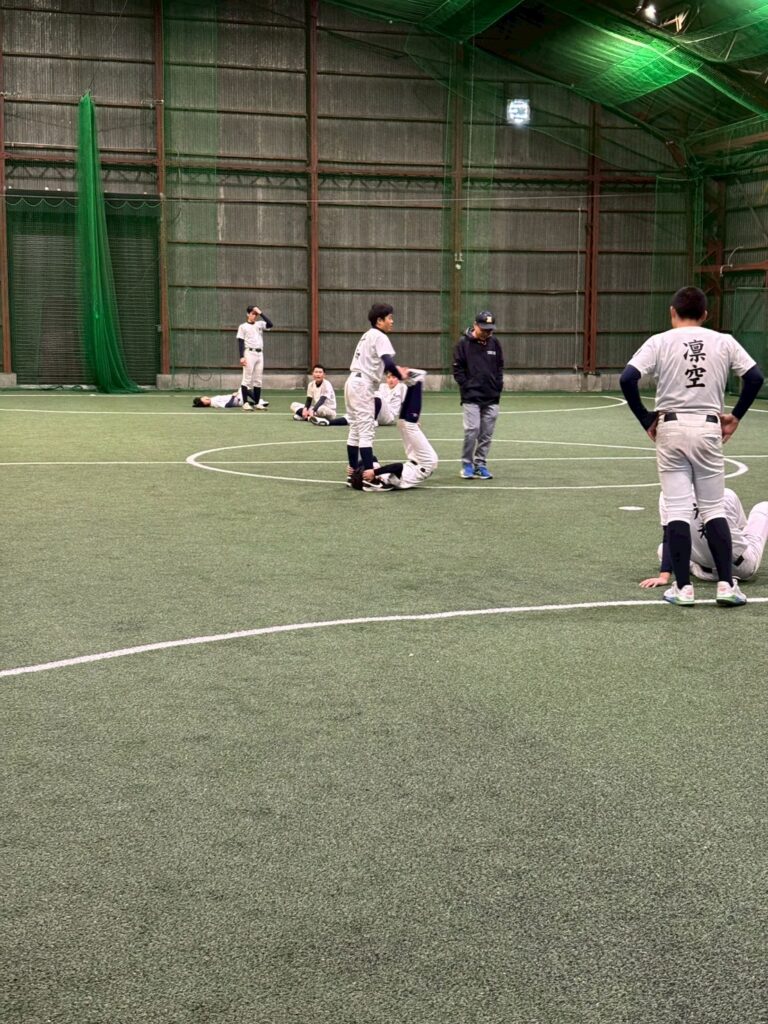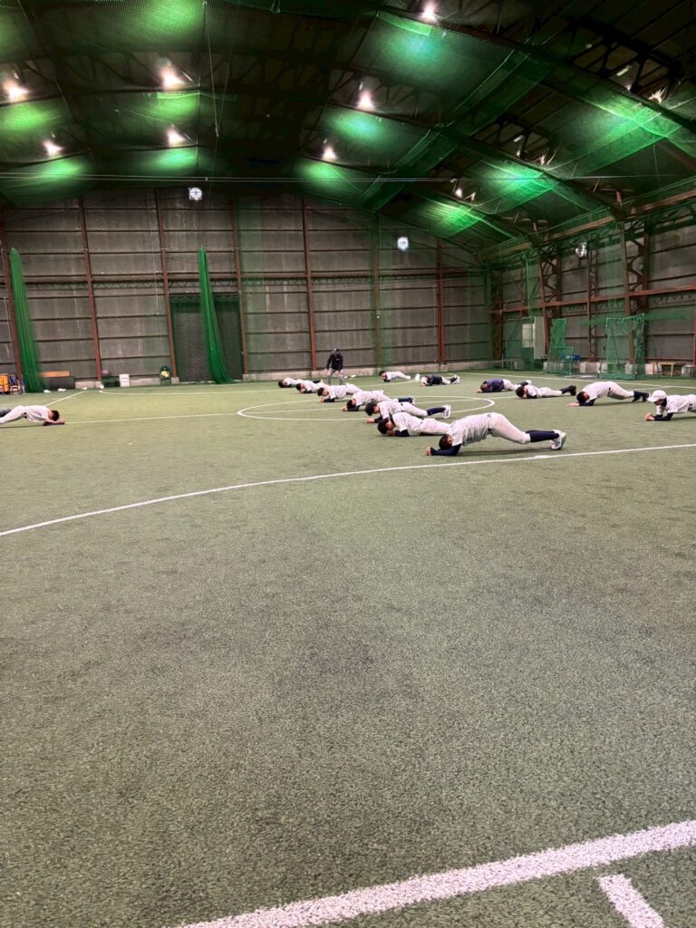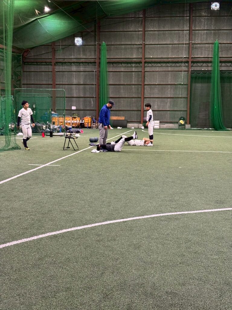 午後からはブリスフィールド室内に移動し、素振り後に5カ所バッティングにて、試合をイメージし個々の課題に取り組みました。そして、体幹強化とストレッチで練習を終えました。本日も1日ありがとうございました。