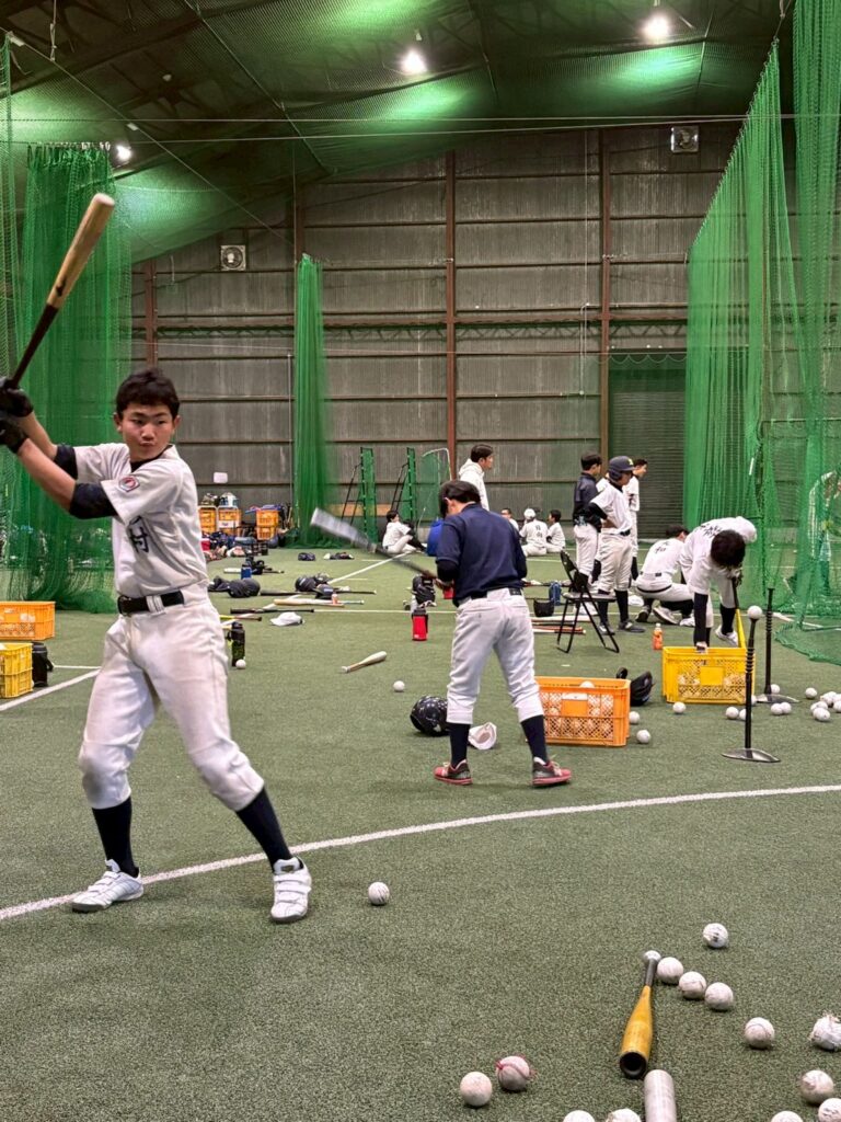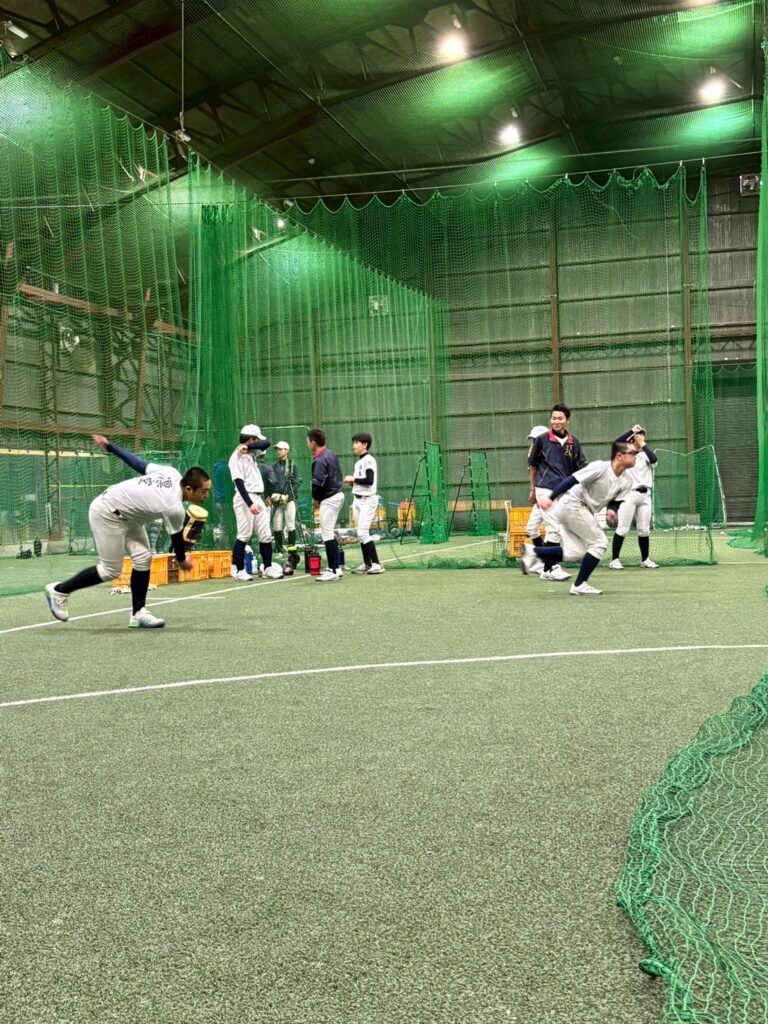 本日は、全体でのブリスフィールド室内での練習でした。アップ、キャッチボールの後、投手、野手に分かれて投手は試合を想定してピッチング練習、野手はクイック、ノックを受けた後、素振り、5カ所に分かれてのバッティング練習を行いました。今週は八尾大会が始まります。各選手が練習した技術を発揮してほしいですね。